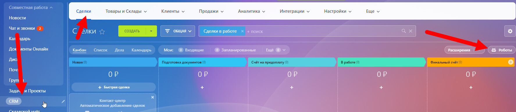 После подключения и настройки роботов и триггеров ваши стадии в воронках и статусы объектов в QD будут синхронизированы.
